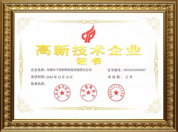 Standardowy:Jiangsu Province High Innovation Technology Enterprise Certification Liczba:GR202432008667 Data wydania:2024-12-16 Data ważności:2027-12-15