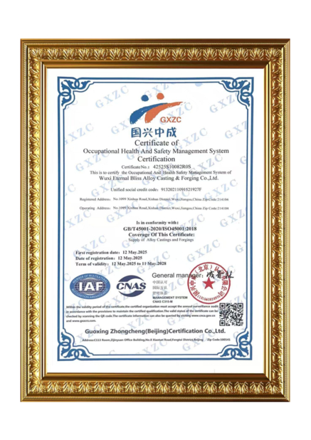 Standardowy:OHSAS18001 Liczba:42525S10082R0S Data wydania:2025-05-12 Data ważności:2028-05-11